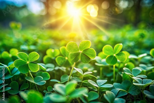 Miniature Green Clover Leaf Field Background, Tilt-Shift Photography