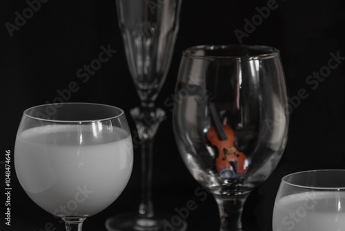 Miniature Violin still life on a wine glass