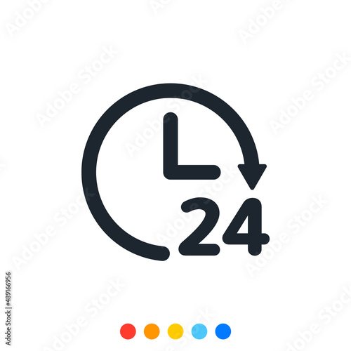 Minimal 24 hour clock icon, Analog clock, Vector and Illustration.