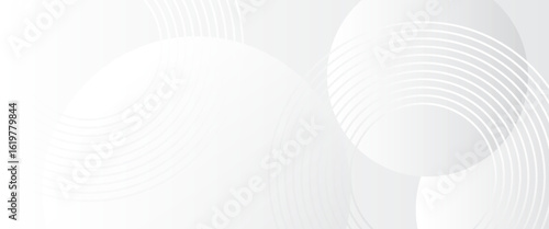 Minimal abstract background with soft white and gray tones, circular lines, and smooth gradients, perfect for elegant and modern design concepts.