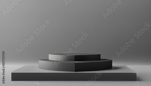 Minimal Abstract Scene with Black Geometric Podium