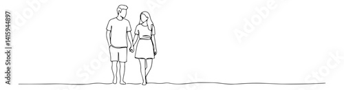 minimal black and white lineart vector of a couple walking hand in hand, romantic love scene