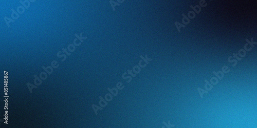 Minimal Blue glowing light on dark backdrop. Noise textured with grainy blurred gradient. Dark noise texture effect with vintage grunge background. Poster cover abstract design, copy space.