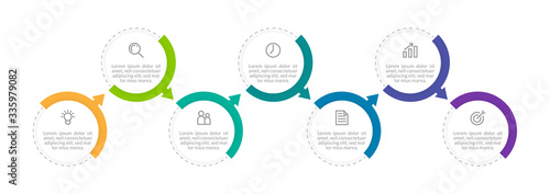Minimal Business Infographics template. Timeline with 7 steps, options and marketing icons .Vector linear infographic with seven conected elements. Can be use for presentation.