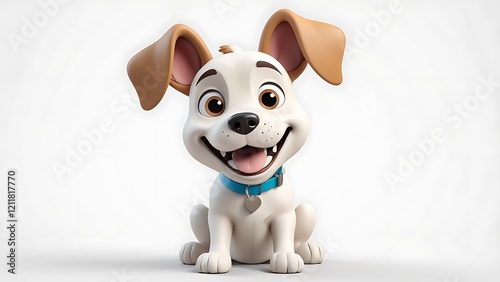Minimal cartoon dog icon with floppy ears and a happy face, isolated on a white background, 3D rendering.