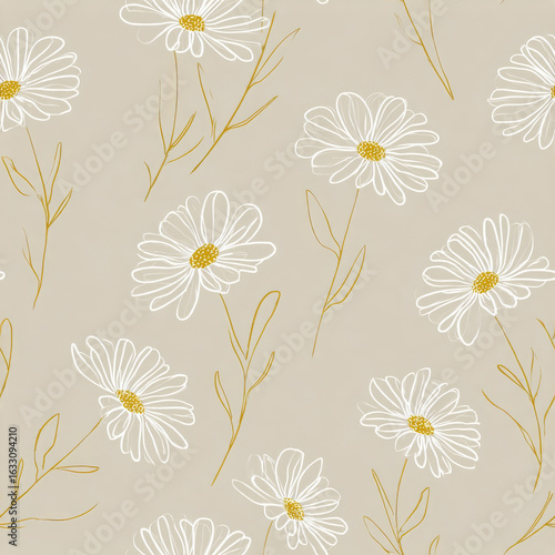 Minimal chamomile flowers in soft line doodles on beige background create serene atmosphere