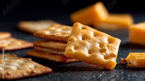 Minimal cheese bites and crackers on matte surface