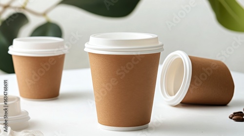 Minimal coffee cup with kraft bag mockup