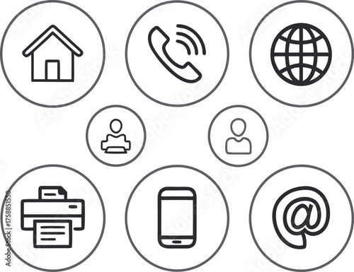 Minimal Contact Icons Set – Home, Phone, Location, Email & Globe Line Icons.