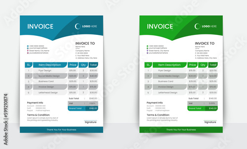 Minimal Corporate Business Invoice design template vector illustration bill form price invoice. Creative invoice template vector. business stationery design payment agreement design template