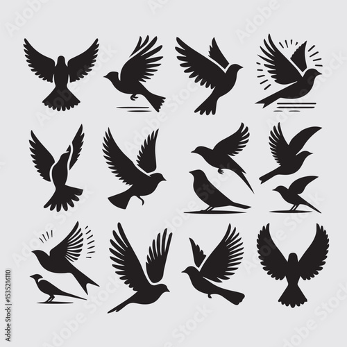 Minimal Flying Birds Silhouettes Vector Set, Clean Bird Shapes Collection