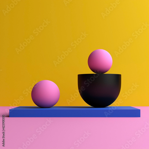 Minimal Geometric 3D Product Display Purple Pink Yellow Sphere Podium