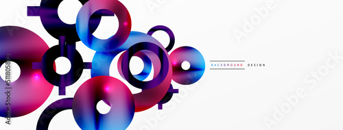 Minimal geometric abstract background. Shiny and glossy circle, line and round shapes design. Trendy techno business template for wallpaper, banner, background or landing