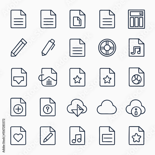 Minimal hand drawn business icons showcase document, cloud, calculator, and various other symbols