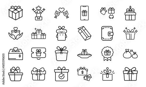 Minimal Line Art Gift and Present Icons – Holiday, Birthday, and Celebration Themed Icon Set for Digital Use