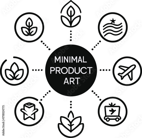 Minimal line art icon set showing product features like eco-friendly, waterproof, fast shipping