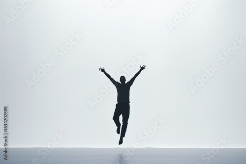 Minimal silhouette of person falling transforming into a standing victorious pose, clean white or light grey background, metaphor for resilience and success.