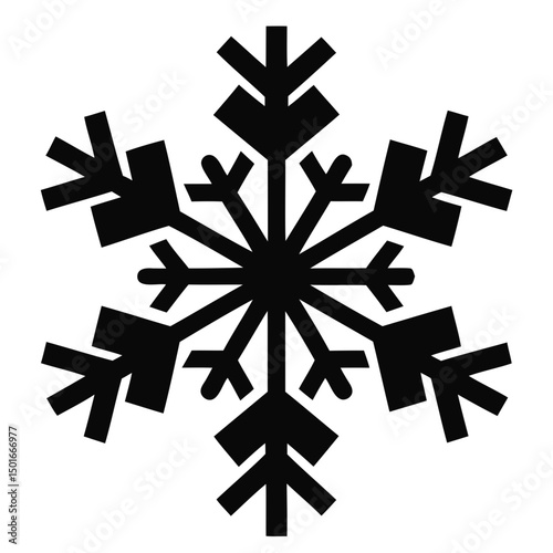 Minimal snowflakes black vector silhouettes perfect for seasonal graphics on clear transparent background