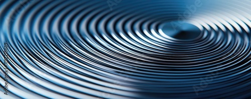 Minimal symmetry concept. Abstract close-up of circular ripples reflecting light in blue tones.