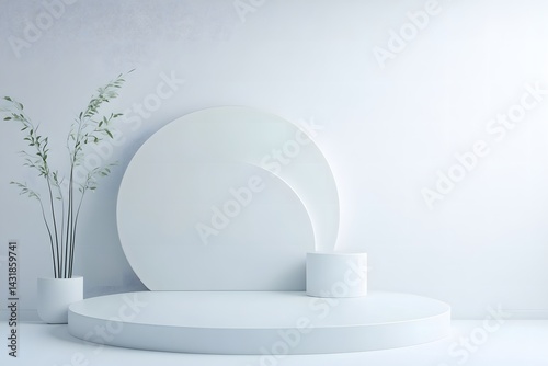 Minimal White Arch Podium with Geometric Accent