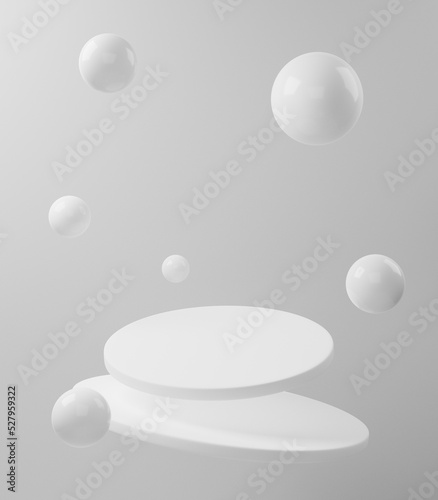 minimal white podium or pedestal for product showcase, empty platform stand display, blank stage for presentation, 3d rendering