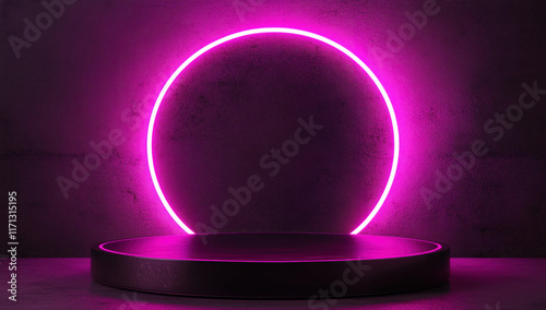 Minimalist 3D glowing pink neon circle on dark textured background