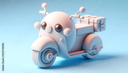 Minimalist 3D motorcycle with soft pastel blue background and smooth playful design in simple composition