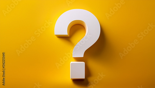 Minimalist 3D question mark on bright yellow backdrop. FAQ and QA. Problem solution.