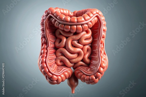 Minimalist 3D Render of Detailed Human Intestine Anatomy - Red