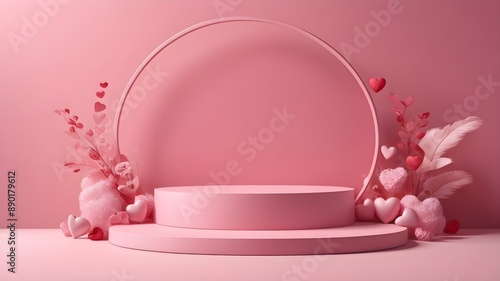 Minimalist 3D Rendering Blank Podium for Valentine's Day in Sweet Pink