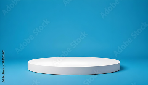 Minimalist 3D rendering product display platform. Simple, clean podium, display, clean and tone on tone background. blue, pastel Minimal empty blue room background. Modern studio. Aesthetic