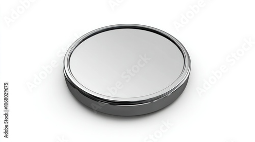 Minimalist 3D silver coin icon, top perspective, on a plain white background with a polished chrome surface.