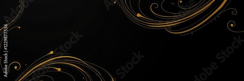Minimalist abstract background with swirling gold and black patterns, black, modern