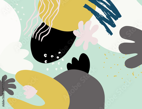 Minimalist abstract boho style hand drawn organic shape background. Creative minimalist hand painted abstract art background. Design for wall decoration, postcard, poster or brochure