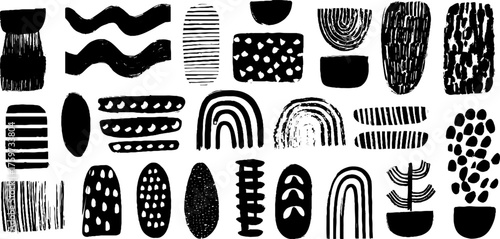 Minimalist abstract design set with grid, wave, circle, dots, and stripes for modern art and decor