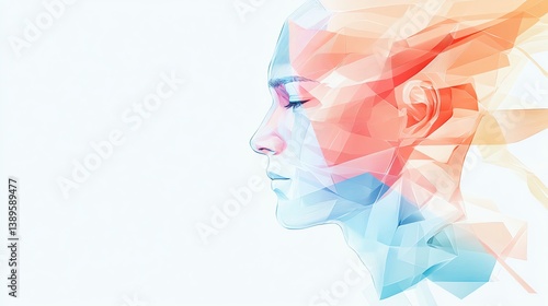 Minimalist abstract humanoid figure in cubist style, thin ink lines, soft gradient colors, geometric surrealism, white negative space