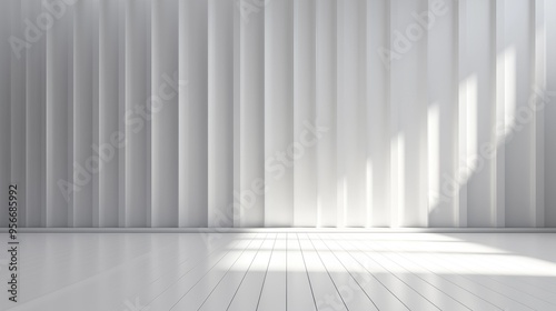 Minimalist Abstract White Background with Soft Shadows and Light Reflections, Ideal for Product Display or Advertising Backdrop in a Studio Setting.