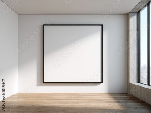 Minimalist Aesthetic: Blank Canvas Frame Centered on Wall with Negative Space