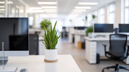 Minimalist and Organized Corporate Office Workspace with Clear Desk for Copy Space