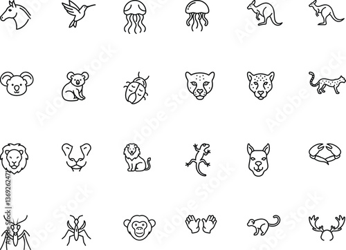 Minimalist Animal Line Art Icons Set.