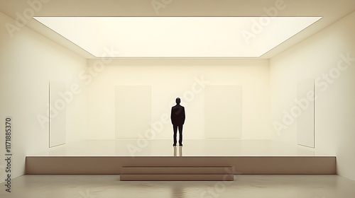 Minimalist Art Gallery with Silhouette of Man in Minimal Light Interior : Generative AI