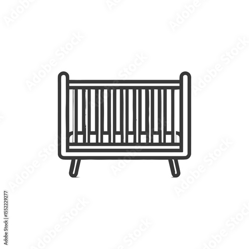 Minimalist Baby Crib Icon: Clean Line Art Illustration on White Background