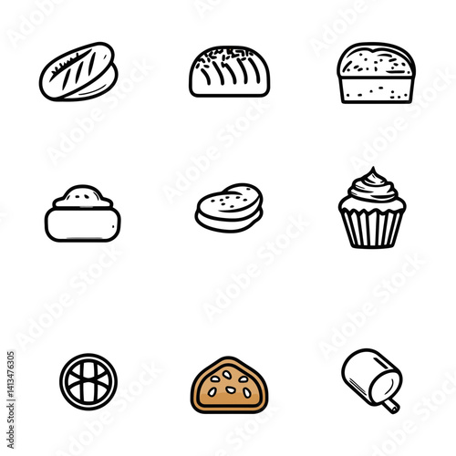 Minimalist bakery icons collection showcasing various baked goods