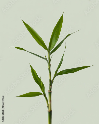 Minimalist Bamboo Stem with Leaves on Gray Background