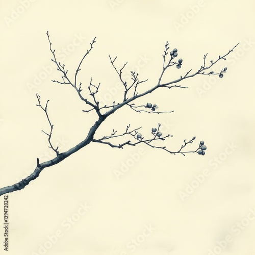 Minimalist Bare Tree Branch on White Background Watercolor Illustration