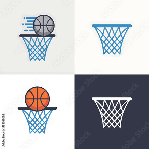 Minimalist Basketball Icon Set Hoops, Ball, and Fast Action Designs