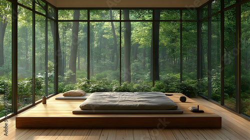 Minimalist Bedroom with Forest View and Futon Bed