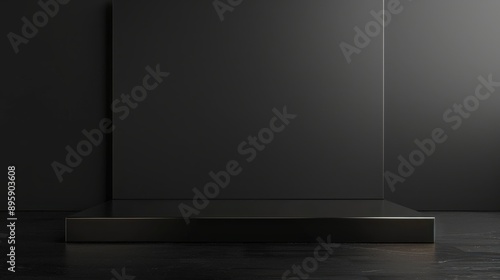 Minimalist Black and Grey Room with Empty Display Podium