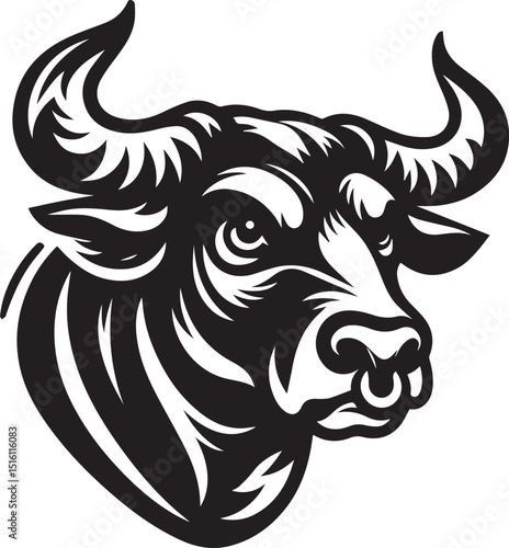 Minimalist Black and White Bull Vector Illustration