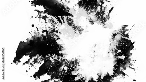 Minimalist black and white grunge texture background with subtle grain, rough brush strokes, abstract ink splashes, vintage film dust, distressed paint stains, and modern artistic border frame
